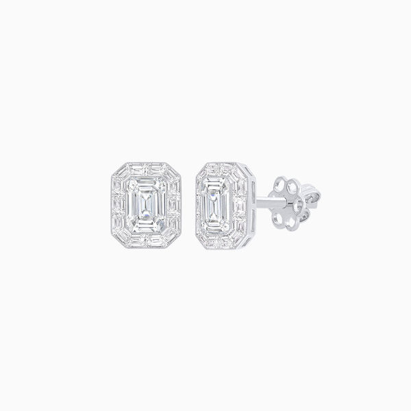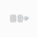 Platinum Emerald-Cut Diamond and Baguette Halo Stud Earrings with GIA Certification