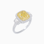 Cushion-Cut Fancy Yellow Diamond Ring in Platinum & 18K Yellow Gold with Tapered and Round Diamond Accents