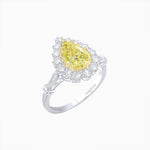 Pear-Shaped Fancy Yellow Diamond Ring with Diamond Halo and Handcrafted Milgrain