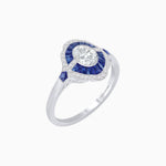 Platinum Art Deco Oval Diamond and French Cut Sapphire Ring with Milgrain Detail – GIA Certified