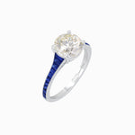 Timeless Spark: Round Diamond & Blue Sapphire Platinum Ring (1.56 CT VS1 Diamond)