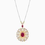 18K Yellow & White Gold Ruby and Diamond Filigree Pendant Necklace