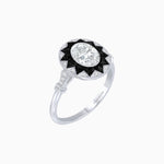 Platinum Art Deco Style Oval Diamond, Calibre-Cut Onyx & Diamond Starburst Halo Ring with GIA Certification